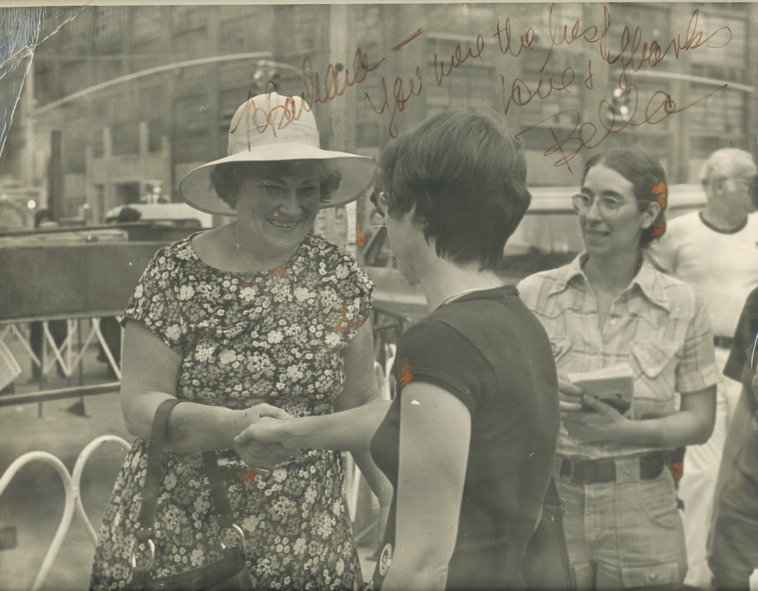 I worked for Bella Abzug for a long time and we got on a bus at six-thirty in the morning to go to the ERA march in D.C. in ’77 and all of the sudden I see my father with a gigantic shopping cart with a hundred cups of coffee and we came up and my dad said, “Bella! I got coffee for you and a bagel!” She said, “Come on Vinnie! Bring it up!” He would fix her air conditioners in the ERA headquarters! (Laughing) The air conditioning would go out and Bella would get on the phone, “Vinnie! I’m schvitzing!” He’d say, “All right! I’ll be over!” He did things for me… He was always proud of what I did. No matter what I did, he was proud. And my mom. And they accepted what I wanted to do, how I wanted to conduct my life. Gay… I think they knew from the day I came out of my mother. When I was eight I sat them down and I said: Dad, mom, I’m a lesbian! My mom looked at my dad and said, “Vinnie, what do you want to eat tonight?” I said: Mom! She said, “Oh! We know that!”
