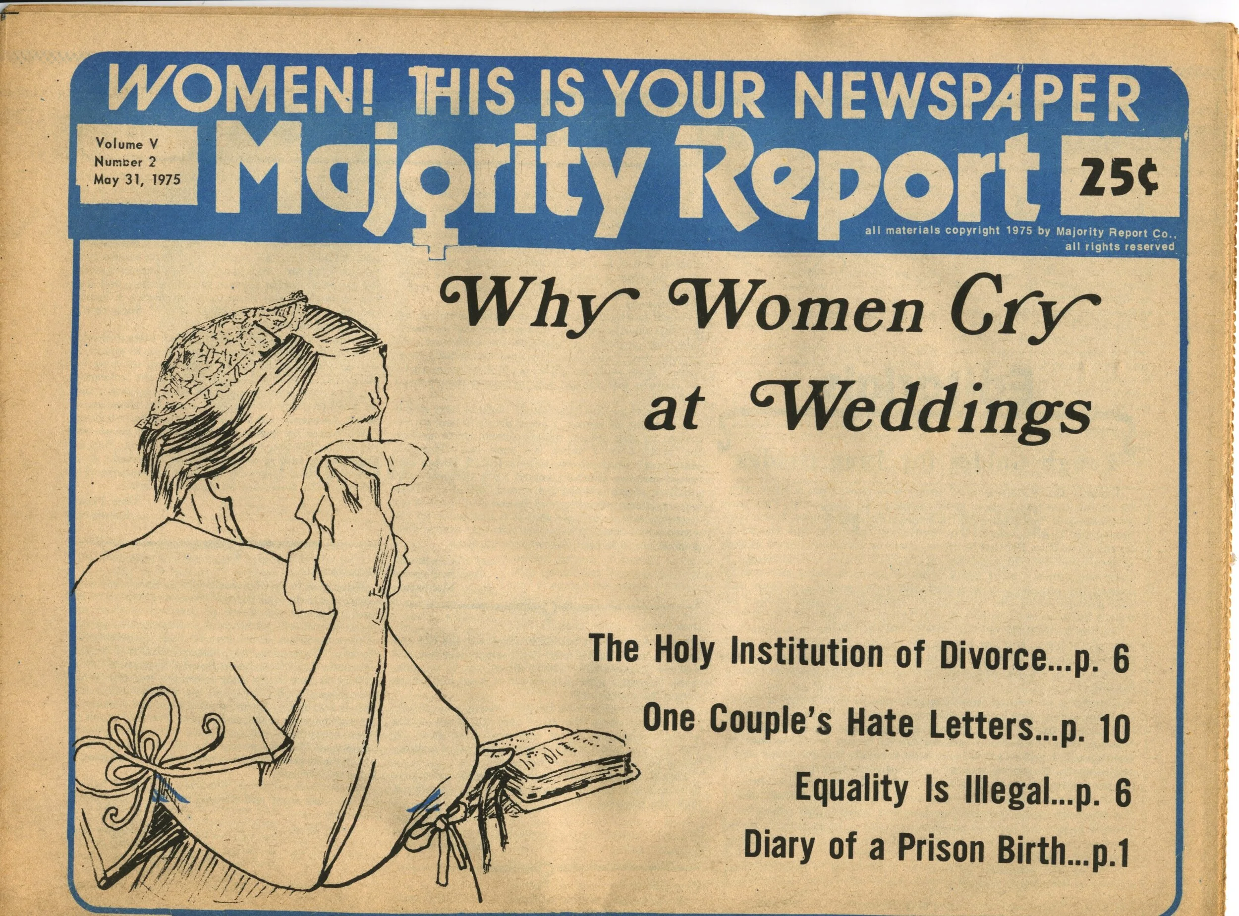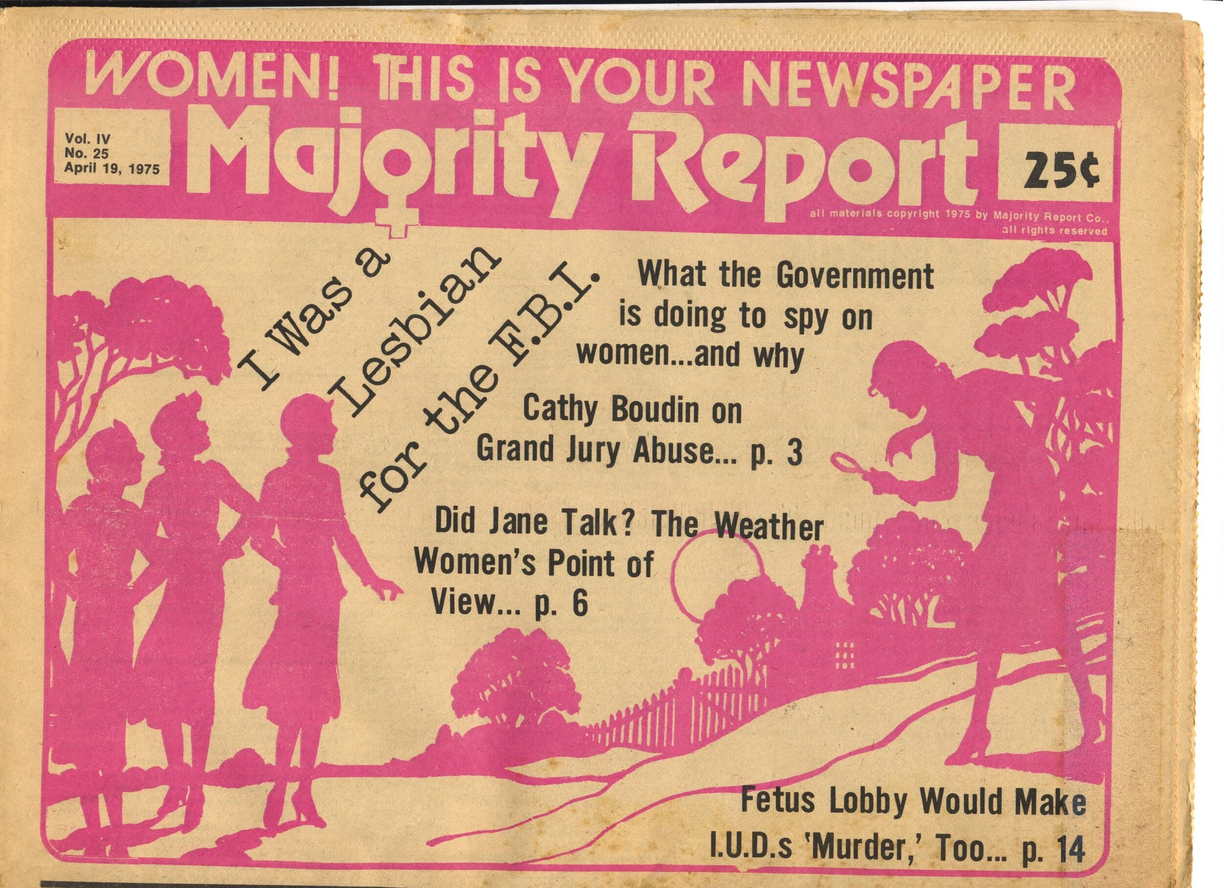 BP: Well, I was very involved with the Majority Report newspaper because my friend Joanne Steele owned it. I did a lot of my political things out of there and I got to go to a lot of things that a lot of lesbians couldn’t go to as press. I had a press badge. So, I got into a lot of meetings. It may sound funny but we didn’t work with a lot of groups because we didn’t want to be pegged. A lot of feminists didn’t want to be pegged. We wanted to do things on our own. And we did. We had “Take Back the Night” and there were a lot of groups there but there were also a whole bunch of us in the back until the guys started to throw rocks at us and everybody went scattering all around Fifth Avenue. But there were a lot of things we did on our own.