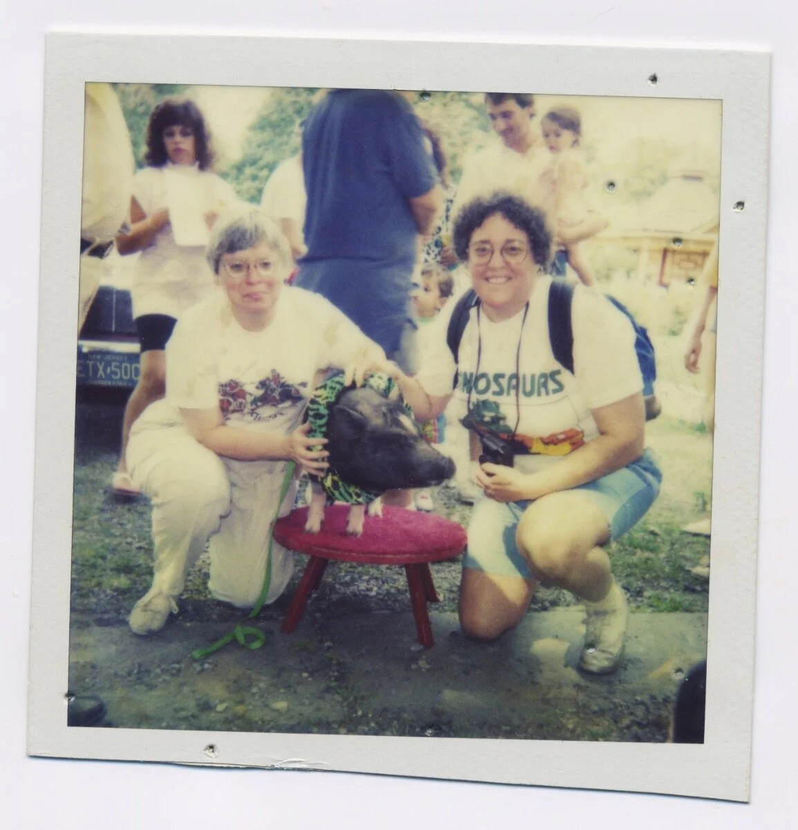 BP: Oh god this is such a story! My god. My family always accepted anybody I brought in if they were good. If they weren’t welcome it wasn’t because they were gay or anything it was just because they weren’t nice. I was between jobs in publishing and god forbid I should go out of publishing! So, it was in between working for Rizzoli International when they went out to go to E.P. Dutton but in those days you had to go through a head hunter and my job was a few months away from starting. So, my Aunt Gloria was at dinner one time and she said, “Why don’t you come over to Standard & Poors you can have a job and this way you’re not out of work while you wait for the other thing!” I said: Yeah! Maybe I will! So, I went over and got a job because my Aunt Gloria was there for like thirty-something years. So, I’m sitting one day in the big cafeteria in the building with my aunt and her friends – all the Italian people from the Lower East Side – and I got up to go get my lunch. So, I’m standing in line and I hear this woman talking, talking, talking in my ear. And I’m like: Oh my god… All of the sudden I hear bang! Somebody hit my tray! Like a cafeteria style tray. And I look up and I saw this woman with a twinkle and just the cutest face! Dancing eyes! The best smile! And I said: Hello! And she went, “Hi!” And we just looked at each other and then I went back to the table. My aunt said, “You almost fell!” I said: Who is that? And she said, “Oh! She works in the next department! That’s Pat Slone!” Patricia Gail Slone.